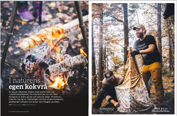 I höstnumret av magasin Friluftsliv har jag och fotograf Emma Mattsson ett reportage som heter ”I naturens egen kokvrå”. Det var en superfin dag som smakade mycket gott i höstskogen. De som lagade maten är inte bara Ur och skur-kockar, utan driver också Naturens hemligheter, som arrangerar friluftsliv-betonade kurser och event.